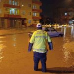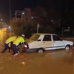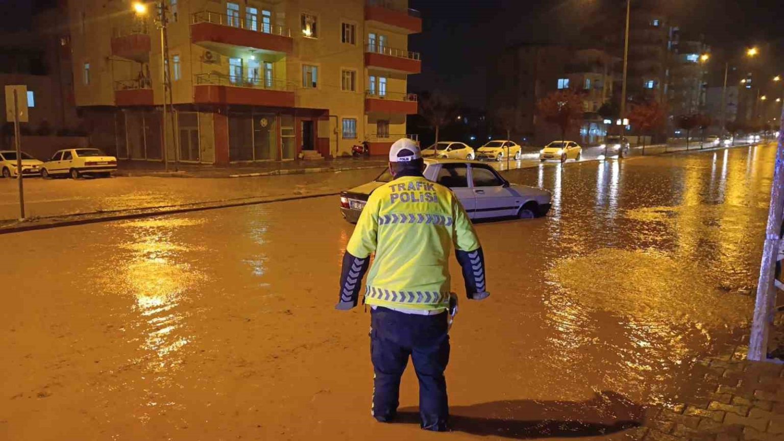 Meteoroloji Genel Müdürlüğü’nün sarı kod ile kuvvetli yağış uyarısı yaptığı illerin arasında yer alan Adıyaman’da yağışlar hayatı olumsuz etkiledi. Gök gürültüsü gecenin sessizliğini bozarken, çakan şimşekler geceyi aydınlattı. Etkili olan yağış nedeniyle cadde ve sokakları sel suları kapladı, araçlar mahsur kaldı. Trafik polisleri suyun içerisine girerek ittirdiği araçları kurtarmaya çalıştı.