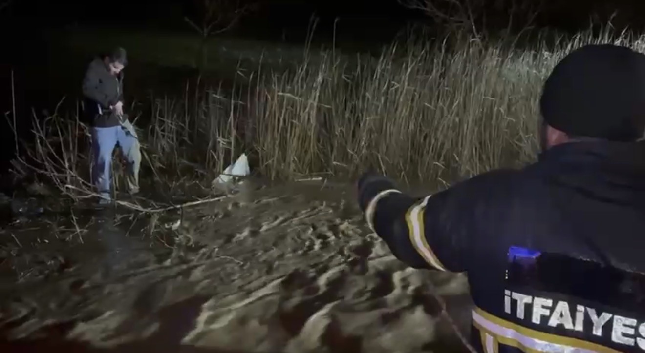 Adıyaman’da sele yakalanan araç suya gömüldü