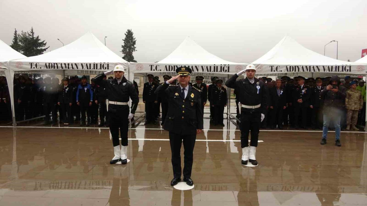 Adıyaman Valiliği bahçesinde gerçekleştirilen törene Jandarma Kıdemli Albay Fahri Semiz, İl Emniyet Müdürü Arzum Nazman ve emniyet personelleri katıldı.