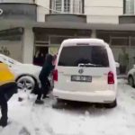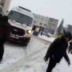 Adıyaman’da, vakadan dönen sağlık personelleri ile çocukların kar topu savaşı yüzleri gülümsetti.