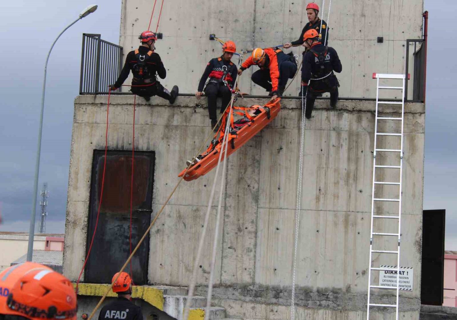 AFET ve Acil Durum Yönetimi Başkanlığı (AFAD) Kayseri İl Müdürlüğü ile Organize Sanayi Bölgesi (OSB) İtfaiye Müdürlüğü iş birliğiyle kayadan düşme ve yaralanmalarda yapılacak müdahaleler için eğitim düzenlendi.