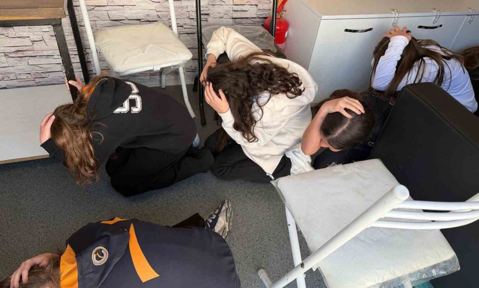 Eğitimin ardından öğrenciler okul bahçesinde bulunan deprem simülasyon tırı ile teorik bilgilerini uygulama fırsatı buldular. Bu eğitimlerde, “Çök, kapan, tutun” tekniği uygulamalı olarak gerçekleştirildi.
