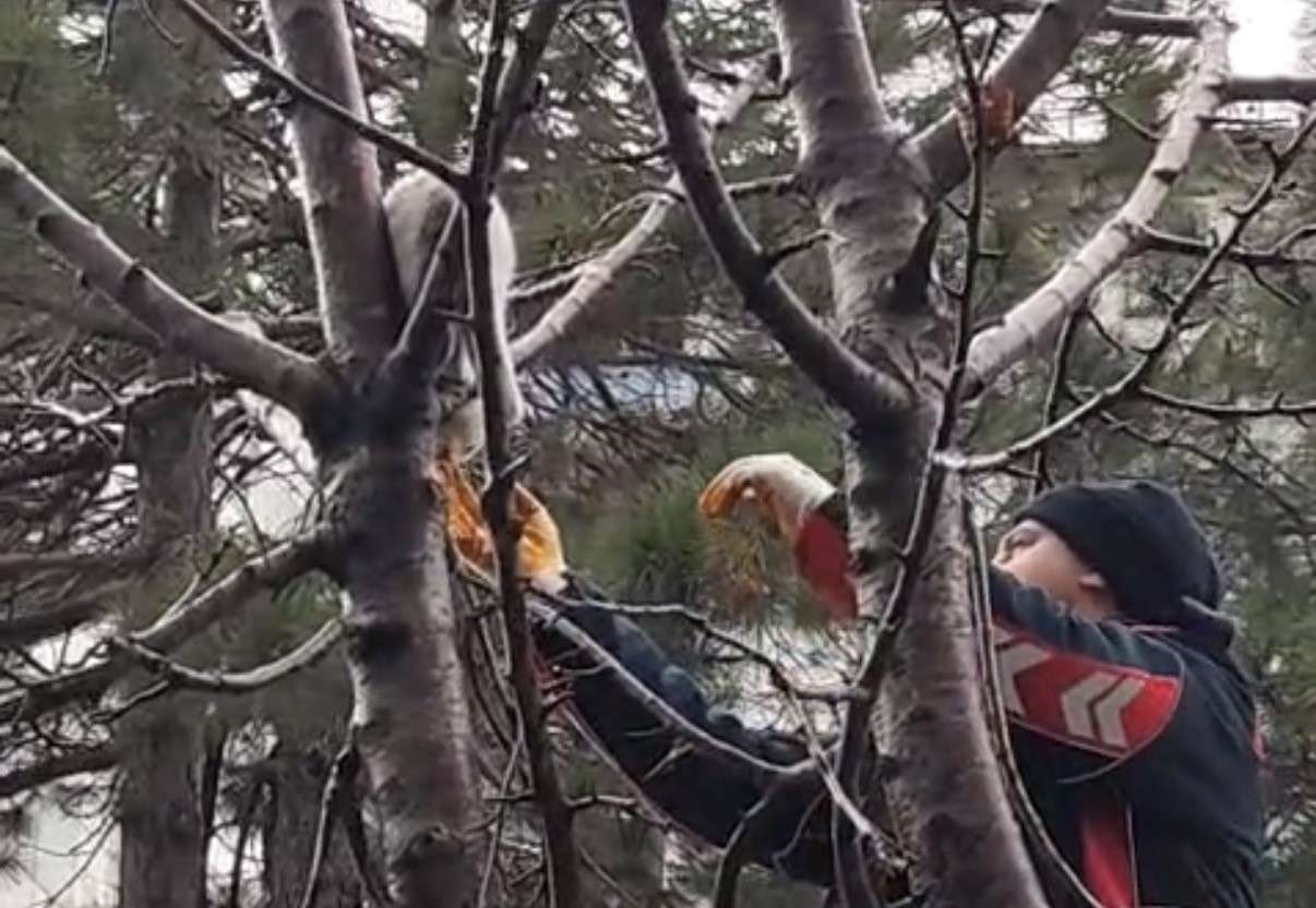 Öğle saatlerinde Cumhuriyet Caddesi üzerindeki bir ağacın tepesinde uzun süre miyavlayan kediyi fark eden vatandaşlar, durumu itfaiye ekiplerine bildirdi. Kısa sürede bölgeye gelen ekipler, merdivenli araç yardımıyla kedinin bulunduğu noktaya çıktı. Ekipler, kediyi panikletmeden dikkatlice bulunduğu yerden alarak güvenli bir şekilde yere indirdi.