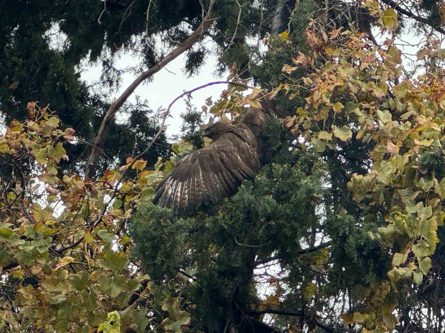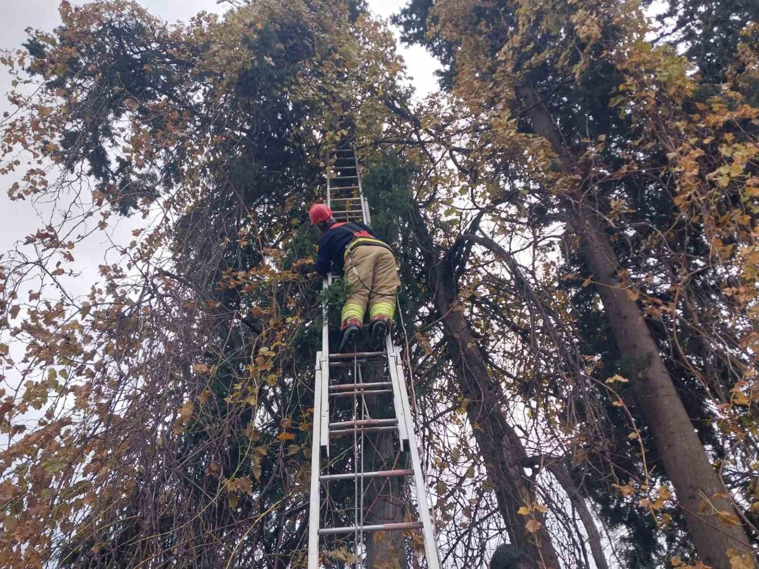 Ağaçta mahsur kalan şahini itfaiye kurtardı