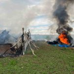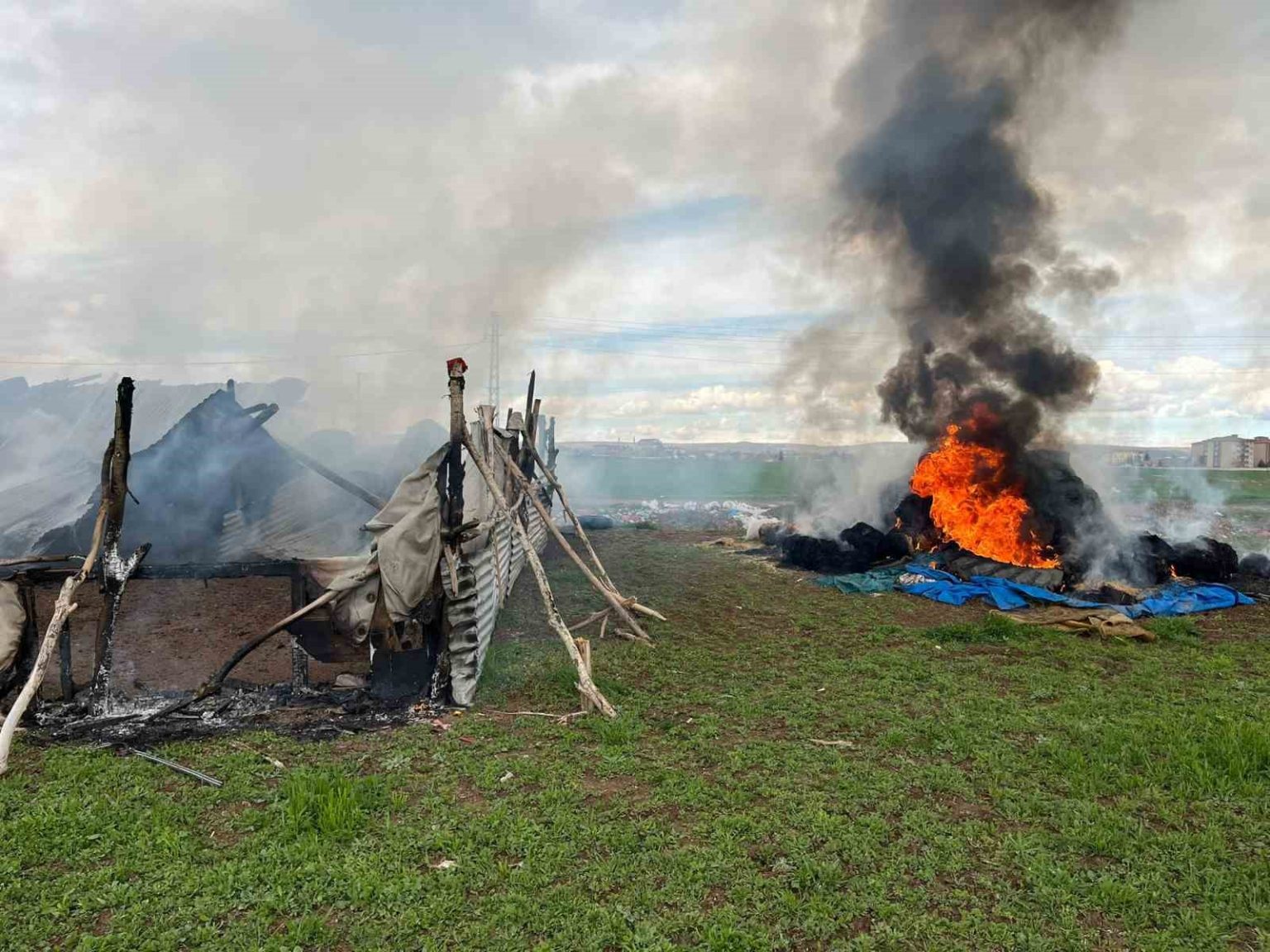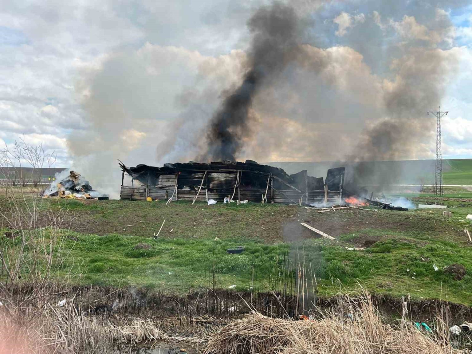 Yangında can kaybı ya da yaralanan olmazken, 150 saman balyası ile 150 metrekarelik ağıl kullanılamaz hale geldi.