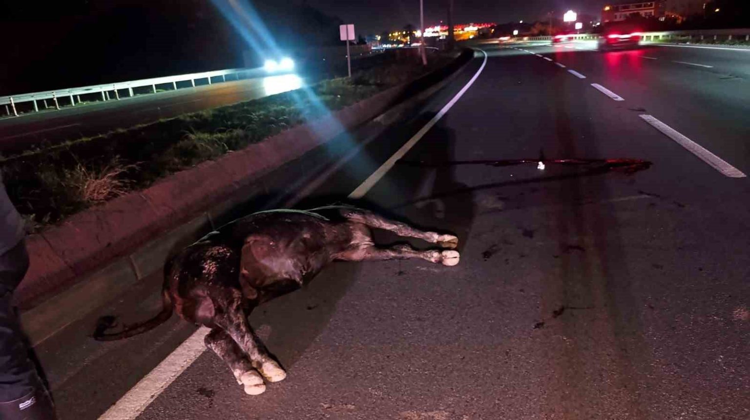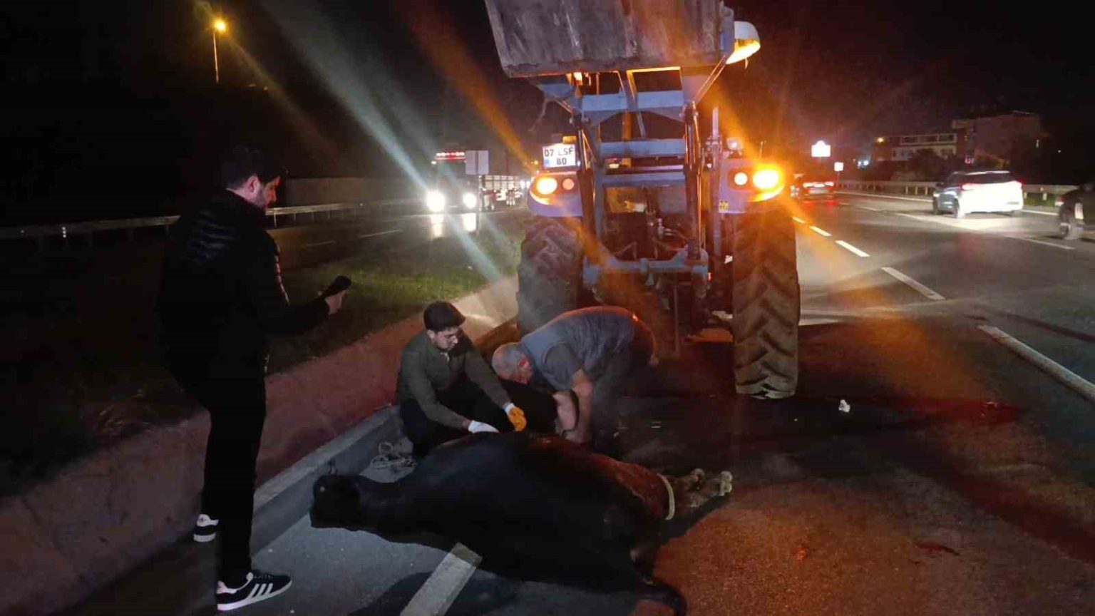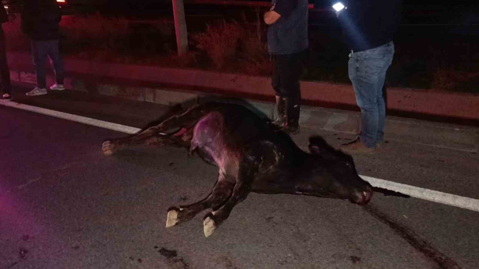 Ekipler olay yerine ulaşmadan bu kez kaza ihbarı geldi. Olay yerine gelen ekipler, Yemişli mesire alanı önünde ineğin cansız şekilde yattığını gördü. Vatandaşlar bazı araçların karanlıkta ineği görmeyerek, çarptığını söyledi. Kazanın ardından telef olan inek bulunduğu yerden kaldırılıncaya kadar başka kazaların yaşanmaması için trafik ekipleri başta olmak üzere polis tarafından D-400 kara yolunda geniş çaplı önlem alındığı gözlendi.
