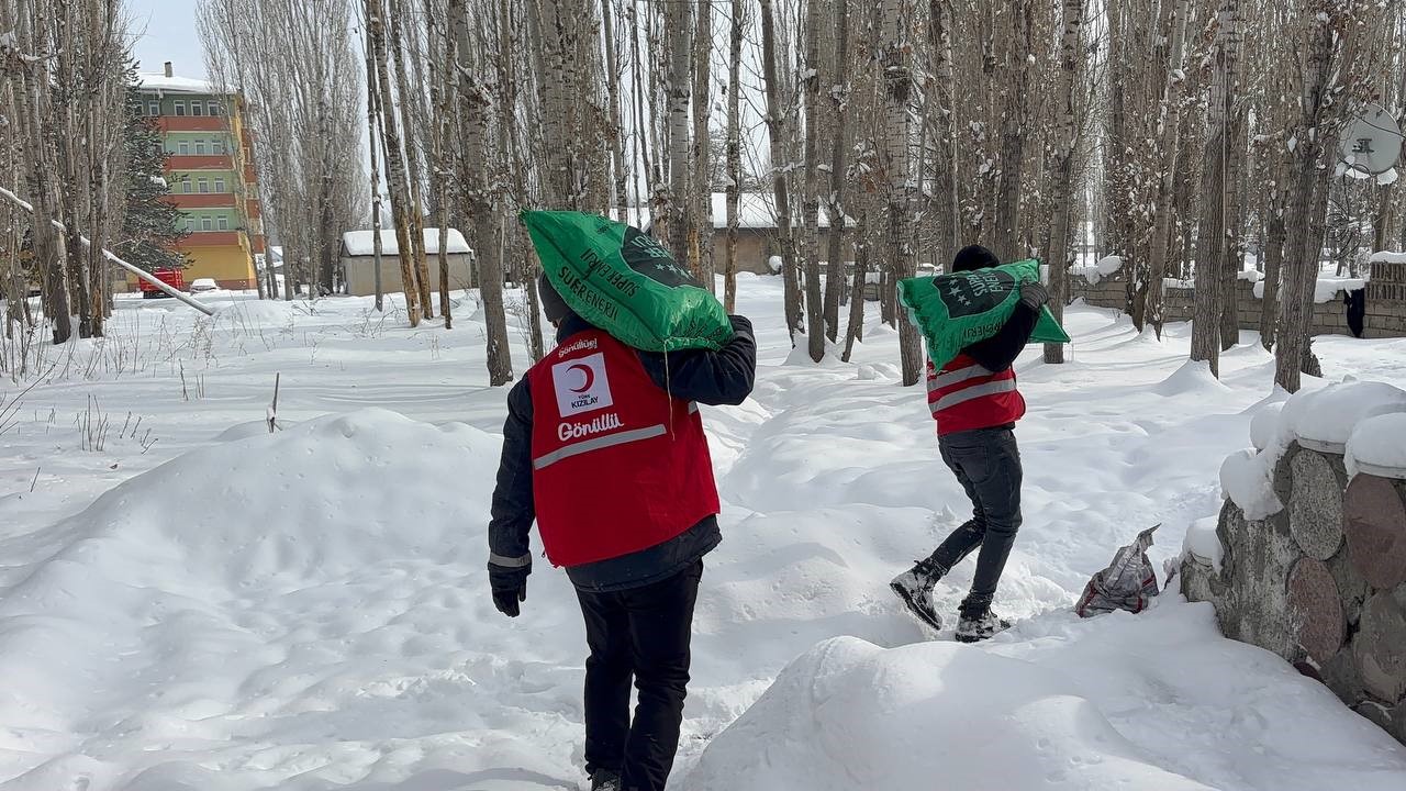 Ağrı’da Türk Kızılay gönüllüleri, dondurucu soğukların etkili olduğu kış günlerinde ihtiyaç sahibi ailelerin ısınma ihtiyacını karşılamak amacıyla kömür yardımını sürdürüyor.