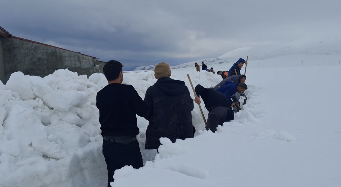 Köy sakinleri bir araya gelerek küreklerle kar tabakasını yarıp suyun kontrollü şekilde akabileceği kanallar açtı.