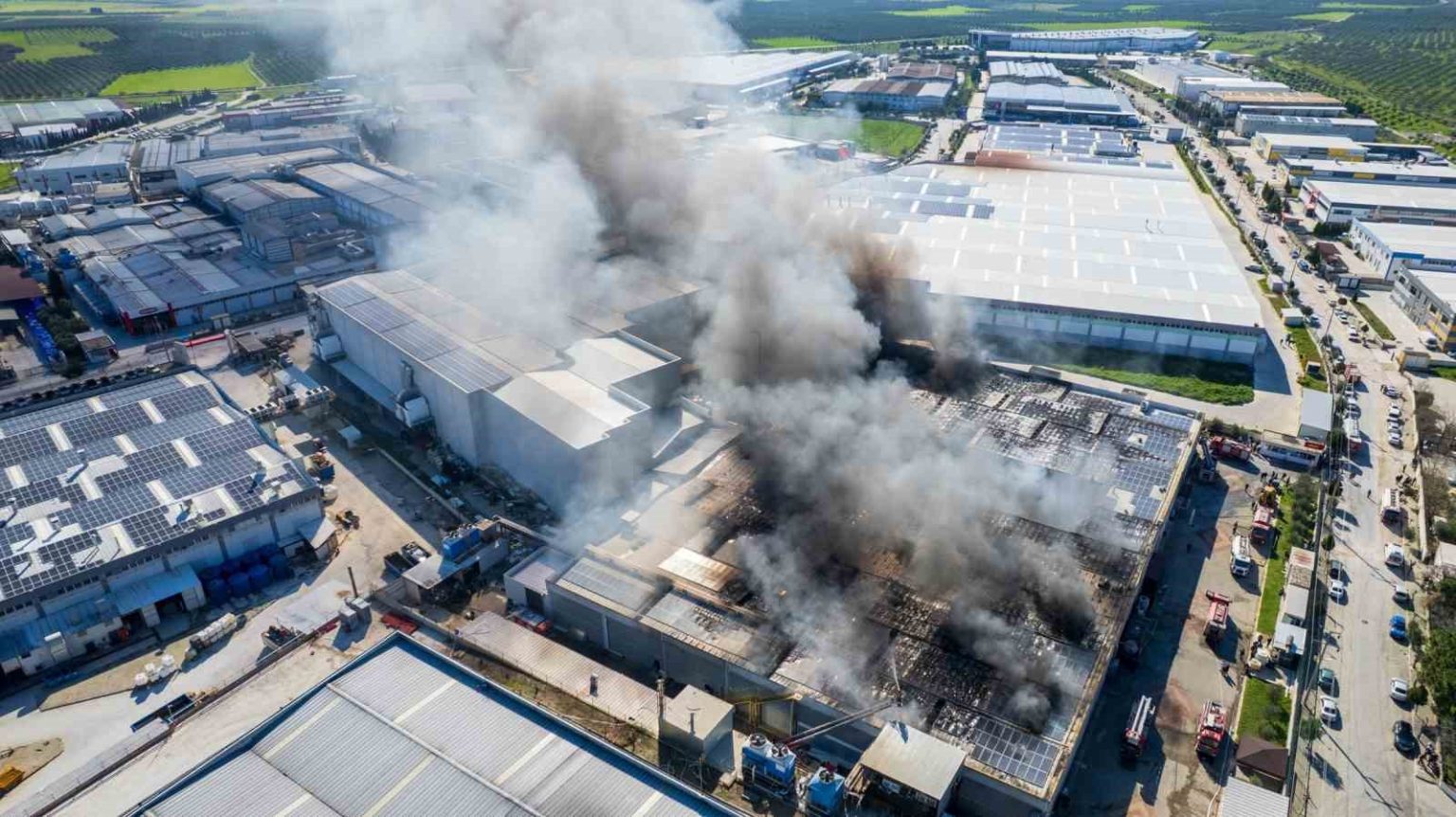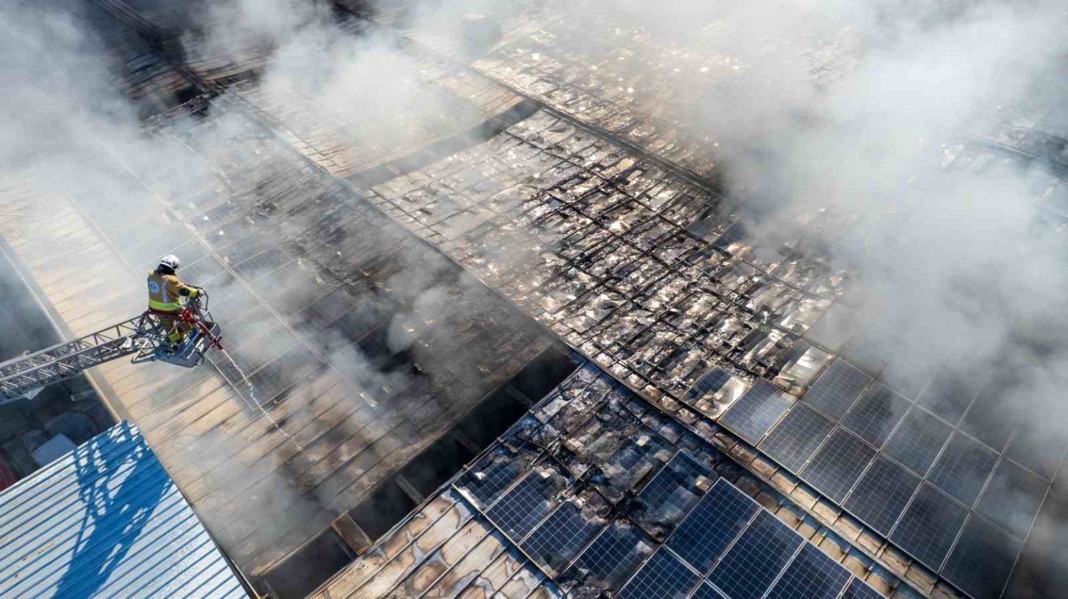 Dron ile havadan çekilen görüntülerde, yangının boyutu gözler önüne serildi. Alevlerin sadece çatıyı değil, çatıda kurulu olan güneş enerjisi panellerini ve fabrikanın iç kısımlarını da tamamen kullanılamaz hale getirdiği görüldü. İtfaiye ekiplerinin farklı noktalardan alevlere müdahalesi sürüyor.