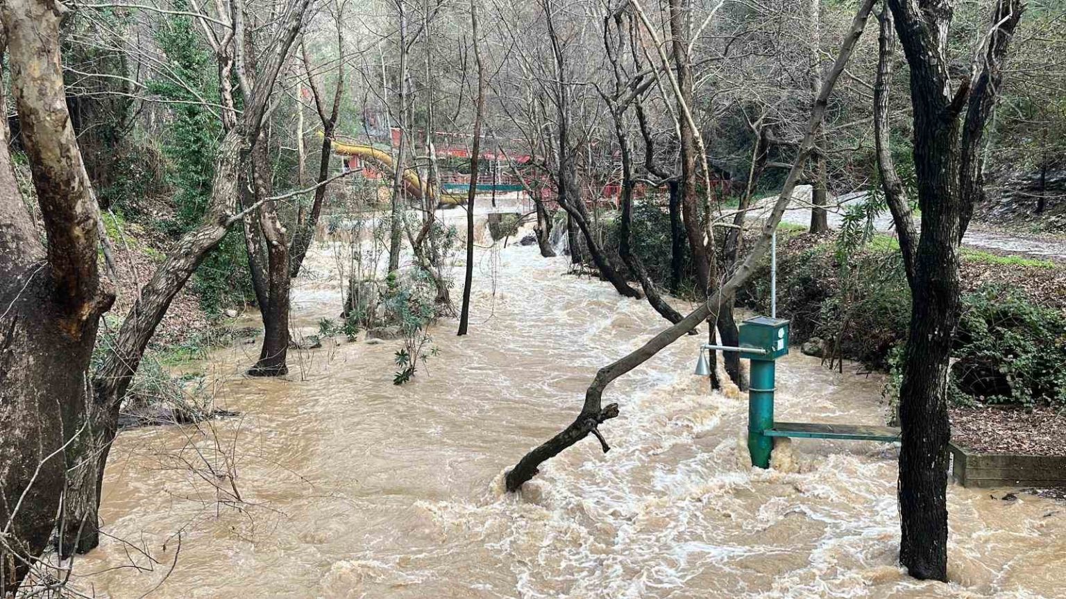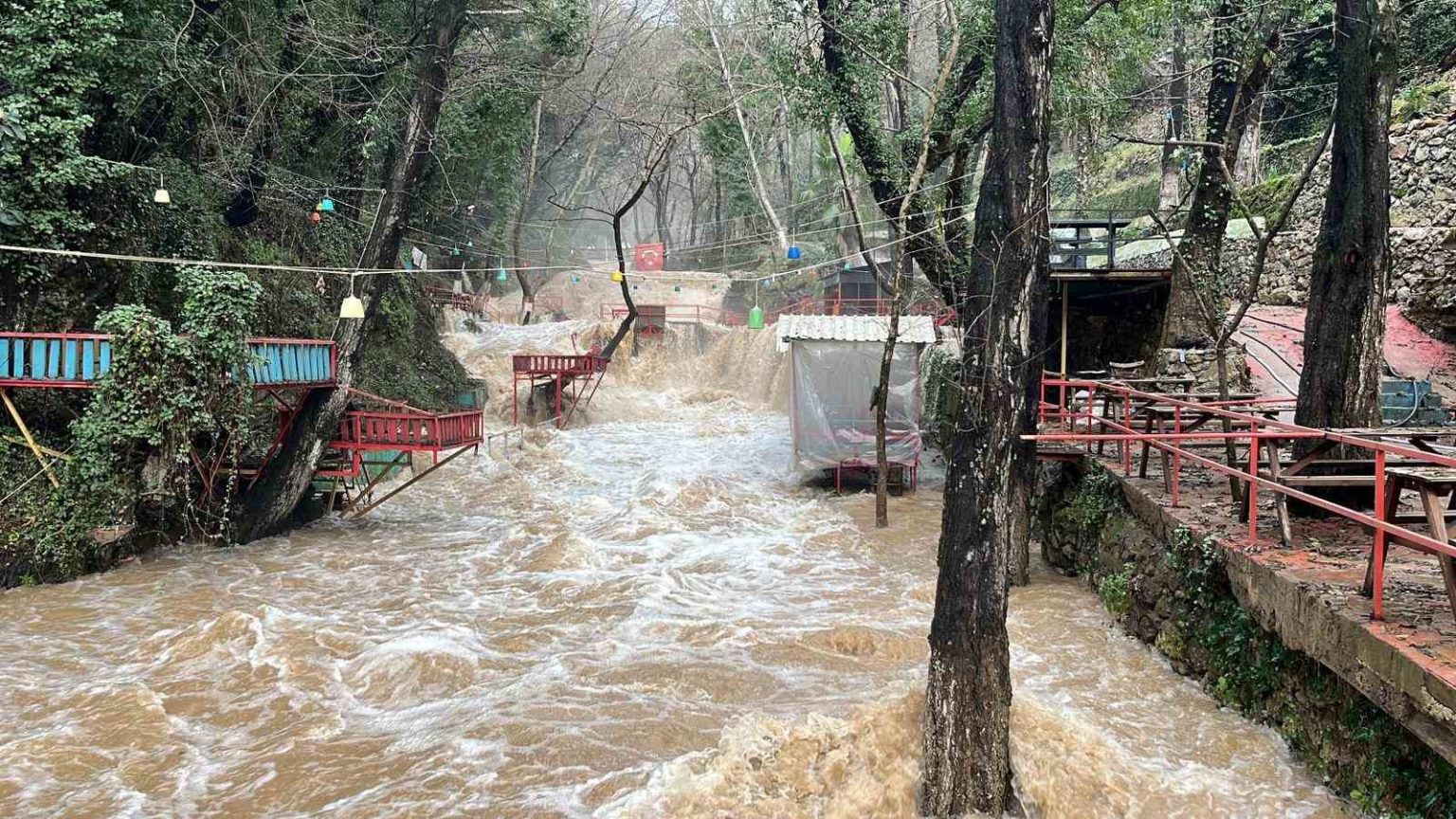 Alanya’da çay taştı: İşletmelere ait çardaklar sular altında kaldı