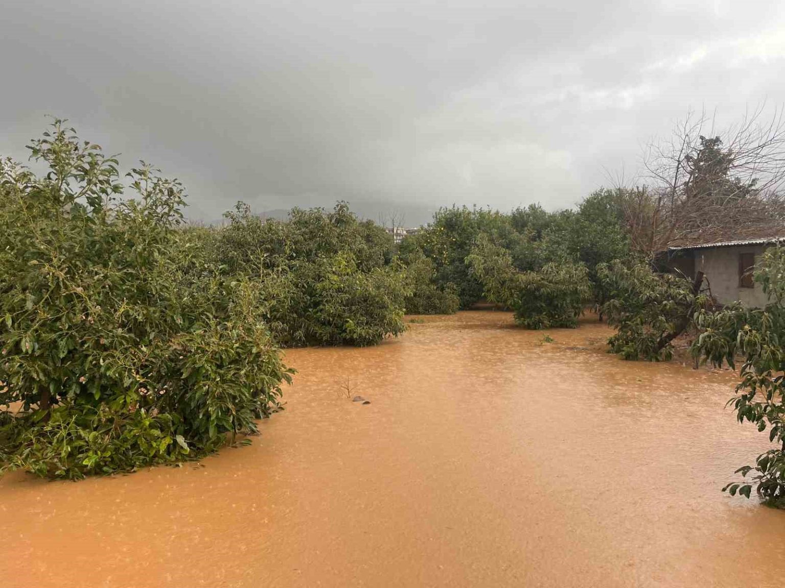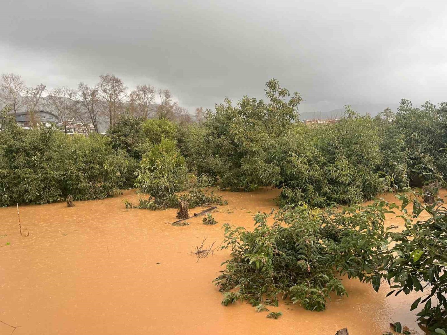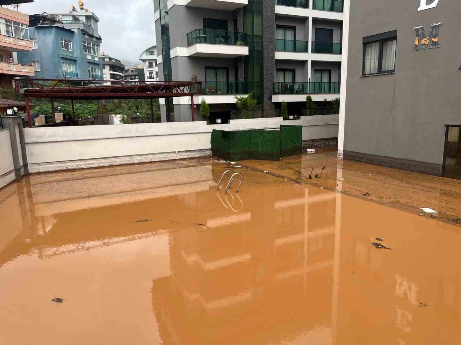 Alanya’da sağanak sebebiyle Oba Çayı taştı, binaların bahçelerini su bastı