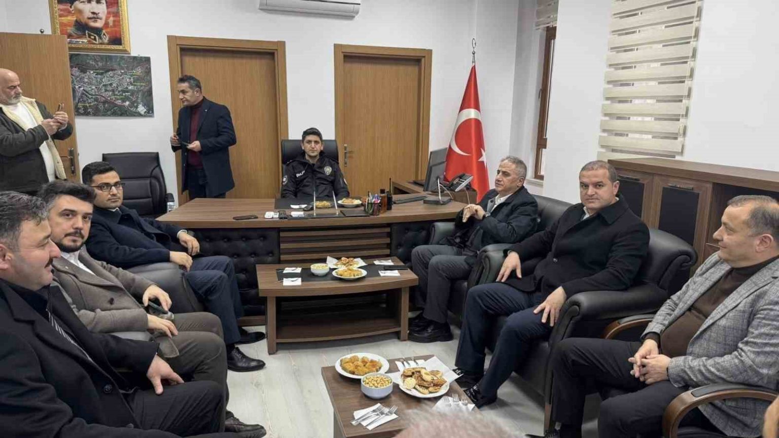 Yeni emniyet binasında incelemelerde bulunan heyet, Emniyet Müdür Vekili Baki Acar’a hayırlı olsun ziyaretinde bulunarak görevinde başarılar diledi.