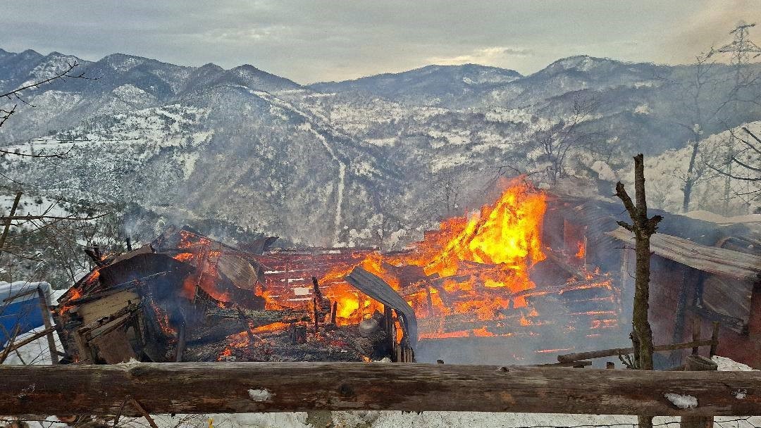 Karabük’ün Yenice ilçesinde alevlere teslim olan ahşap ev tamamen yanarak kullanılmaz hale geldi.