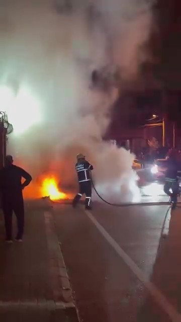 Edinilen bilgiye göre, Mersincik Mahallesi Zuhal Sokak’ta saat 01.10 sıralarında park halinde bulunan bir otomobilden dumanlar yükselmeye başladı. Durumu fark eden ve araç sahibi olduğu düşünülen kişi, otomobilin yanına gelerek şoför kapısını açtı. Kapının açılmasıyla birlikte yangın bir anda büyüdü ve alevler kısa sürede tüm aracı sardı. İhbar üzerine bölgeye sevk edilen itfaiye ekipleri, alev topuna dönen araca müdahale ederek yangını kontrol altına aldı ve söndürdü. Dakikalarca alev alev yanan otomobil tamamen küle dönerek demir yığını haline geldi.