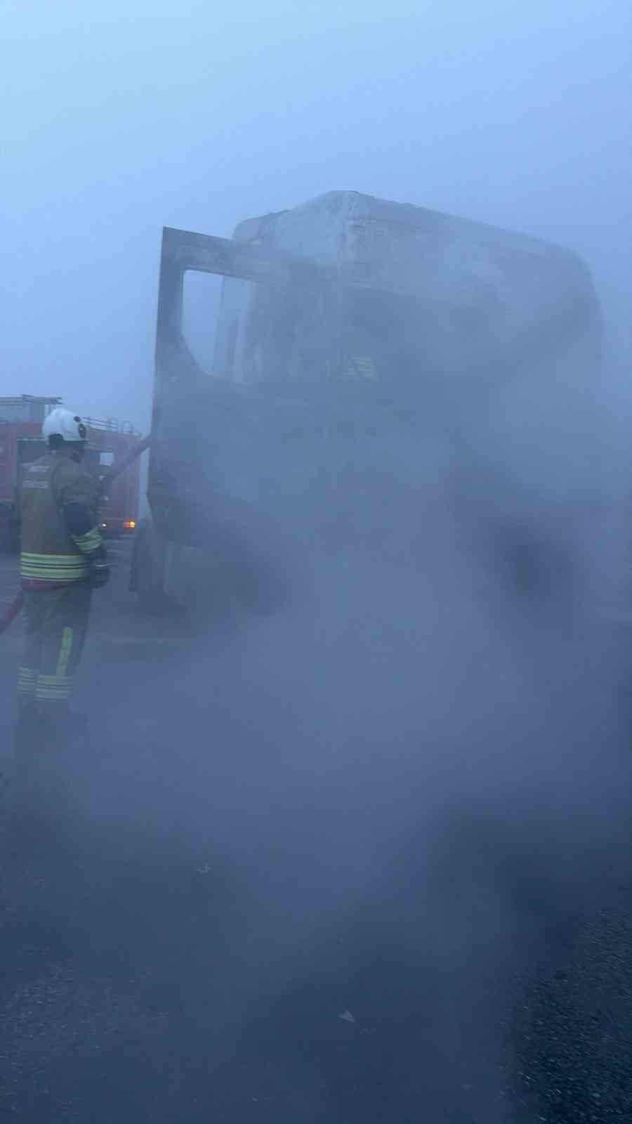 Hatay’ın Belen ilçesinde seyir halindeyken yanan tır kullanılamaz hale geldi.
