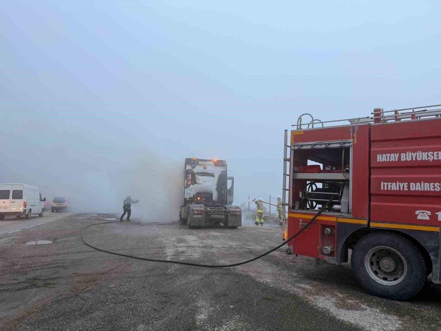 Yangın, akşam saatlerinde Belen ilçesi Kıcı Mahallesi Antakya-İskenderun yolu üzerinde yaşandı. Seyir halinde olan tır, bilinmeyen nedenle yanarak alevlere teslim oldu. Yangını fark eden tır sürücüsü durumu 112 Acil Çağrı Merkezi’ne bildirdi. Olay yerine itfaiye ekipleri sevk edildi. Kısa sürede bölgeye gelen Hatay Büyükşehir Belediyesi’ne bağlı itfaiye ekipleri yangına müdahale etti. Ekiplerin müdahalesiyle söndürülen yangında can kaybı ve yaralanma yaşanmazken, tır kullanılamaz hale geldi.
