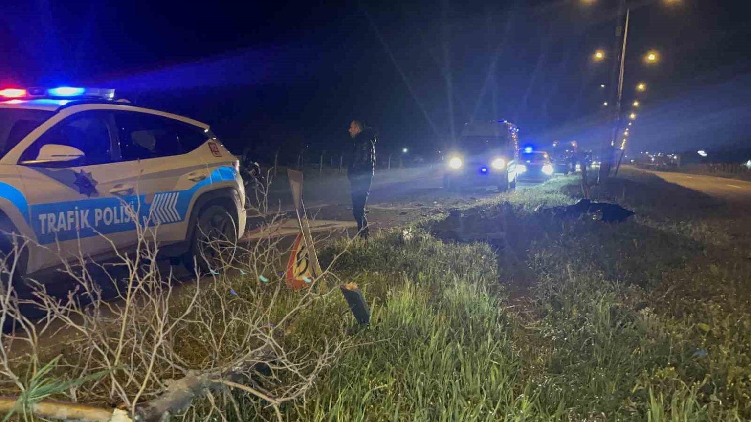 Tekirdağ Çorlu’da alkollü sürücünün kullandığı otomobil, orta refüjde ağaca ve tabelaya çarparak karşı şeride geçti.