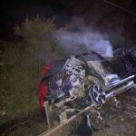Bilecik’in Osmaneli ilçesinde alkollü sürücünün bariyerlere çarpması sonucu meydana gelen trafik kazasında araç alev aldı.