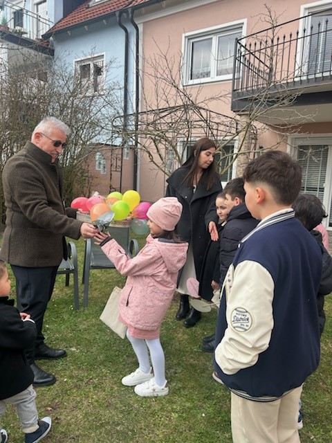Almanya’nın Münih kenti yakınlarındaki Pfaffenhofen kasabasında Türkçe ve Türk kültürü öğretmenliği yapan Handan Karataş’ın öncülüğünde çocuklarla birlikte bayramlaşma etkinliği düzenlendi. Program kapsamında hem çocuklara hem de büyüklerine unutulmaz anlar yaşatıldı. Türk ve İslam geleneklerinin en güzel örneklerinden biri olan bayramlaşma kültürü, bu özel organizasyon yeniden canlandırıldı. Bayramın ilk durağı, Necla Yılmaz ve Duran Yılmaz çiftinin misafirperverliğiyle açılan sıcak bir yuva oldu. Büyük bir özenle hazırlanan bayram sofrası, çocukların neşesiyle daha da anlam kazandı. Çocuklar büyüklerinin ellerini öperek bayramlaştı; şekerlerini ve harçlıklarını alırken yüzlerindeki büyük bir mutluluk belirdi. Eski bayramların sıcaklığını aratmayan bu ortama samimiyet ve paylaşma hakim oldu.