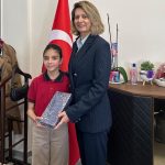 İlçe Milli Eğitim Müdürü Tuba Sinan, makamında ağırladığı Zeynep’i duyarlı davranışından dolayı tebrik ederek teşekkür etti ve kendisine hediye takdiminde bulundu.