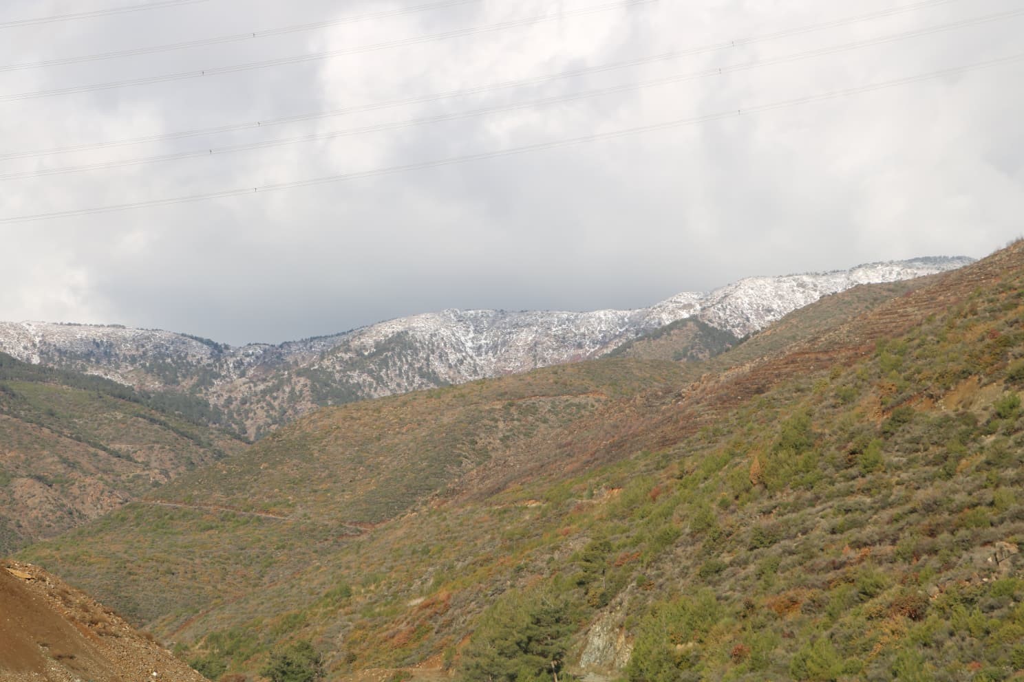 Hatay’ın yüksek kesimlerinde etkili olan yağışla Amanos dağı etekleri beyaza büründü.