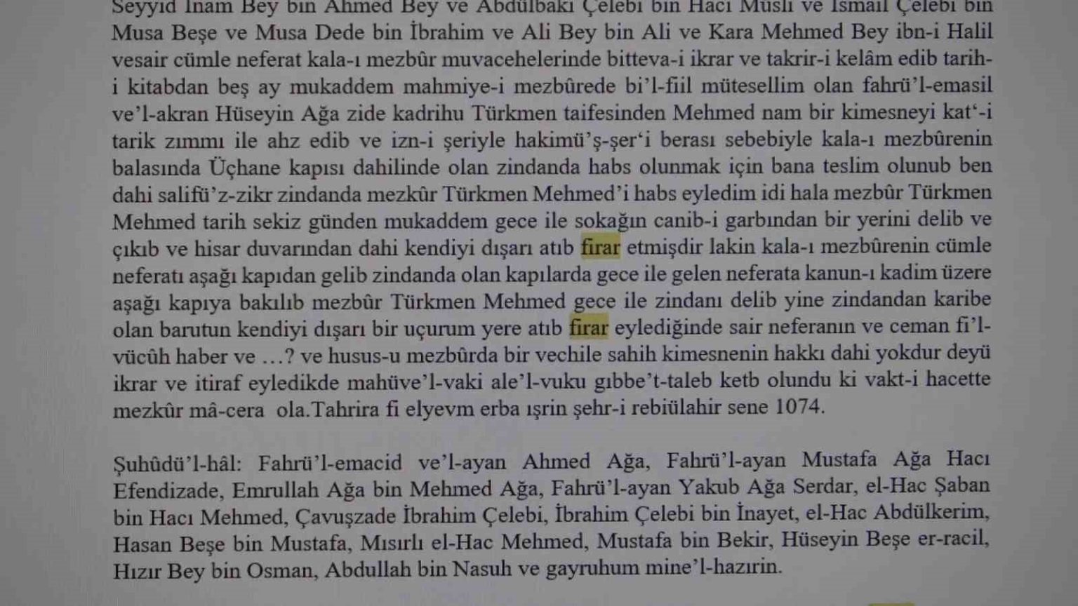 “İncelenen defterlerdeki tek firar vakası”