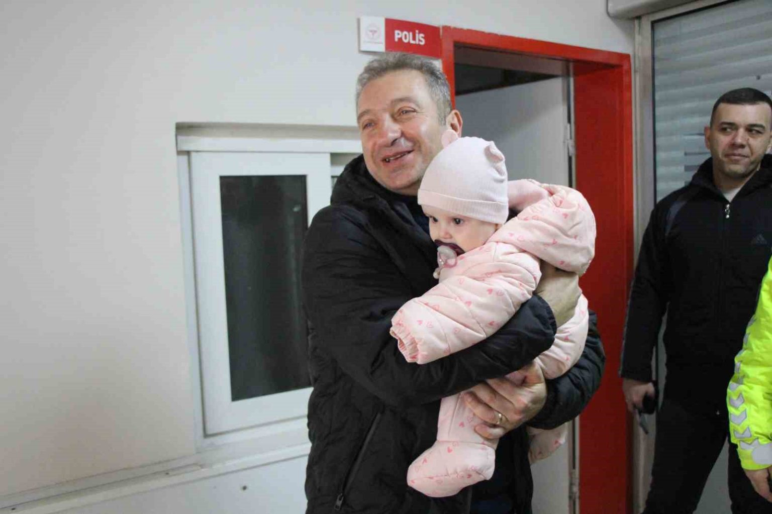 Hastaneye gelen Amasya Emniyet Müdürü Ayhan Saraç, geçmiş olsun dileğini paylaştığı personelinin sağlık durumu hakkında bilgi aldı. Personelinin ailesiyle de görüşen Saraç, 6 aylık bebeğini de kucağına alıp bir süre ilgilendi.