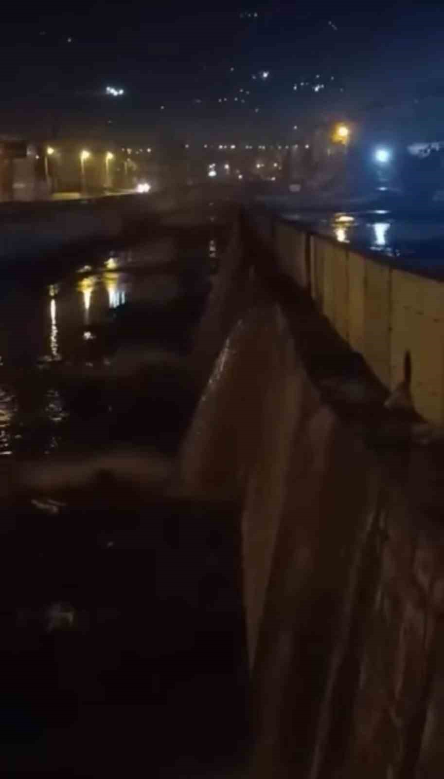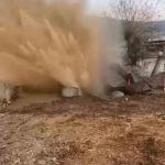 Hatay’da kanalizasyon yapım işi esnasında iş makinesinin temas ettiği ana su hattından havaya fışkıran su, metrelerce yükseğe ulaştı.