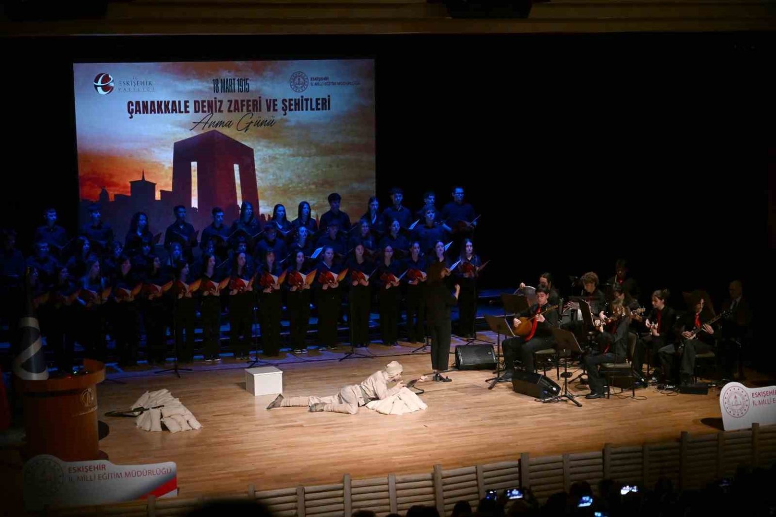 Eskişehir Valiliği himayesinde, İl Millî Eğitim Müdürlüğü koordinesinde ve Cemal Mümtaz Sosyal Bilimler Lisesi tarafından düzenlenen program, Ayhan Oskaylar Koleksiyonu’ndan parçalarla hazırlanan ’Çanakkale Sergisi’nin gezilmesiyle başladı. Saygı duruşu yapılması ve İstiklâl Marşı’nın okunmasının devam eden programda, Kur’an-ı Kerim tilaveti gerçekleştirildi. Program kapsamında Millî Eğitim Müdürlüğü ve Temel Eğitim Genel Müdürlüğü tarafından düzenlenen resim, şiir ve hikâye yarışmalarında dereceye giren öğrenciler ödüllendirildi. İl birincisi olan öğrencilere ödülleri Eskişehir Valisi Dr. Erdinç Yılmaz tarafından takdim edildi. Etkinlikte öğrenciler tarafından şiirler okunurken, video gösterimi de sunuldu. Anma programı, öğrenciler tarafından sahnelenen ’Şehadetle Yazılan Destan’ adlı oratoryo gösterisi ile sona erdi.