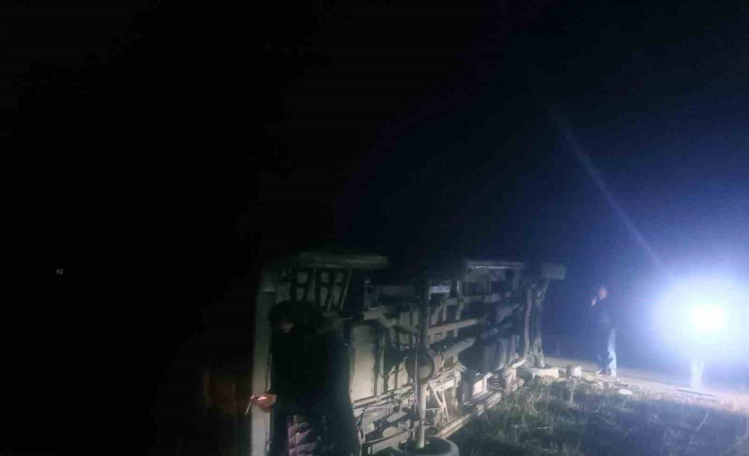 Ankara’nın Nallıhan ilçesinde işçileri taşıyan servisin yağmurdan ötürü kayganlaşan yolda kontrolden çıkarak devrildiği kazada 14 kişi yaralandı.