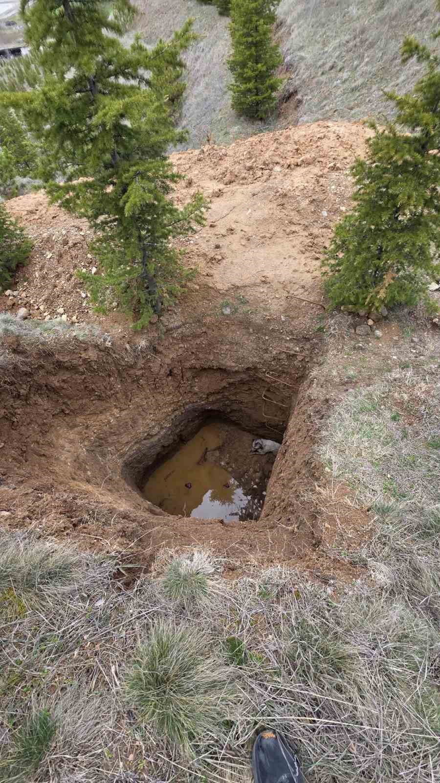 Ankara’nın Akyurt ilçesinde kimliği belirsiz kişilerce, kanuna aykırı şekilde kazılan çukura düşen köpek, itfaiye ekiplerince kurtarıldı.