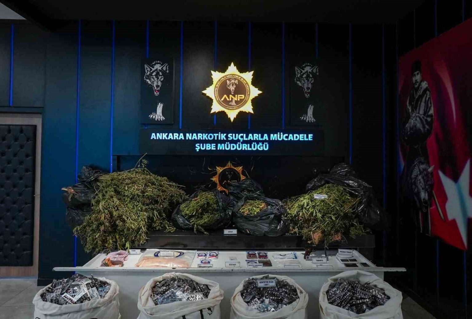 Yapılan operasyonlarda; 811 bin 879 adet sentetik ecza, 16 kilo 880 gram esrar, 2 kilo 109 gram amfetamin maddesi, 485 gram kokain, 366 gram metamfetamin, 125 gram bonzai, ecstasy hap, 170 kök kenevir, 3 hassas terazi, 1 tabanca, 6 adet tabanca fişeği, uyuşturucudan elde edildiği belirlenen 487 bin 920 lira, bin 450 avro ve 950 dolar ele geçirildi.