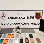 Operasyonda yapılan ev aramalarında 2 adet laptop bilgisayar, 16 adet cep telefonu, 1 adet tabanca, 1 adet muşta ile 5 adet uyuşturucu hap ele geçirildi.
