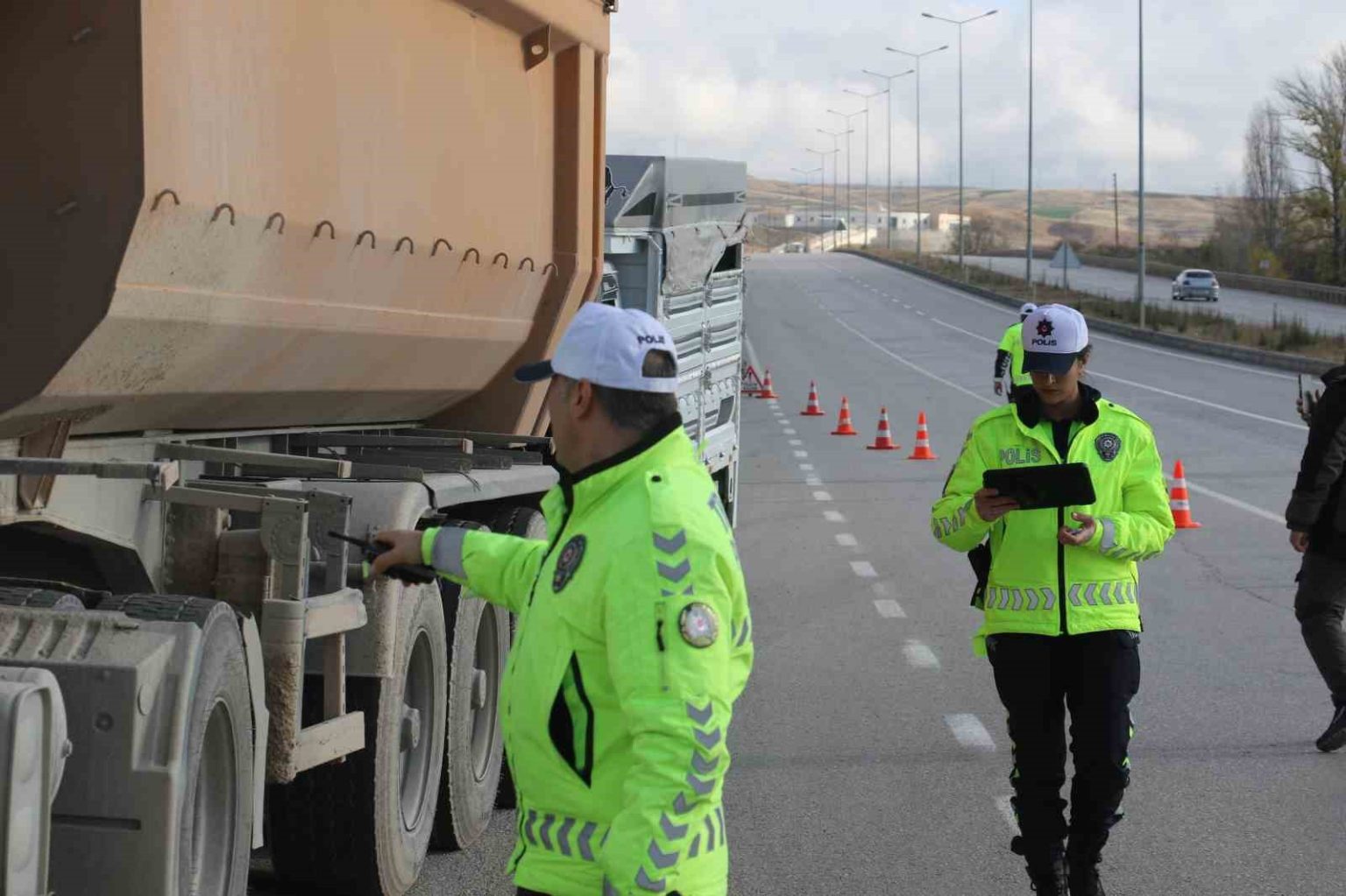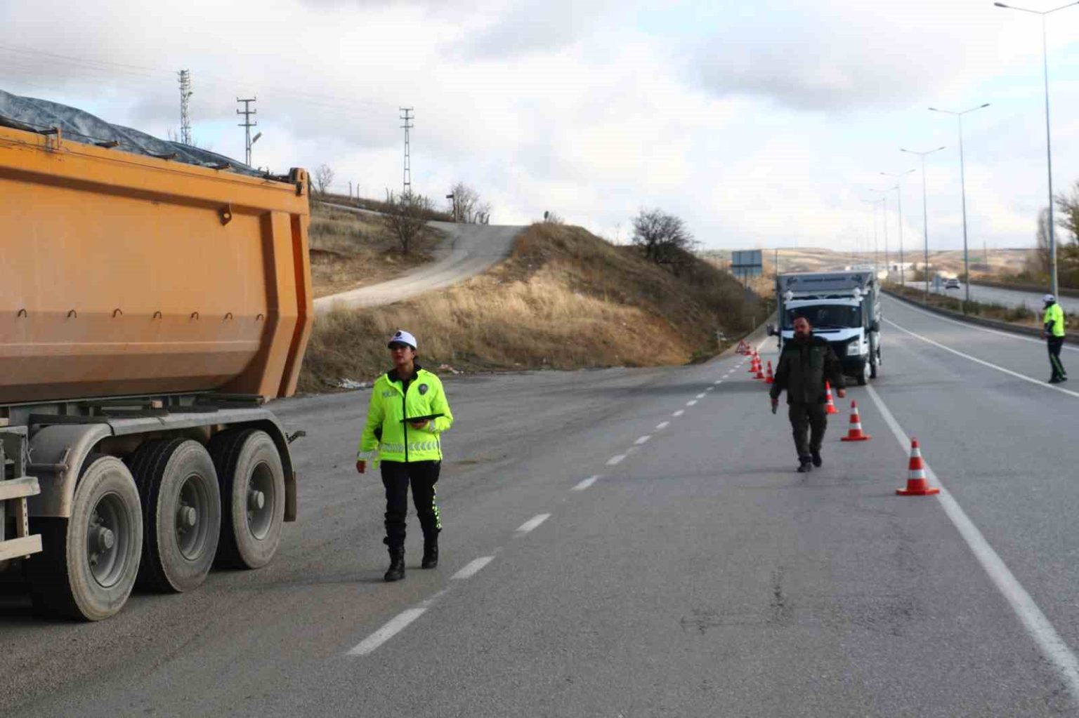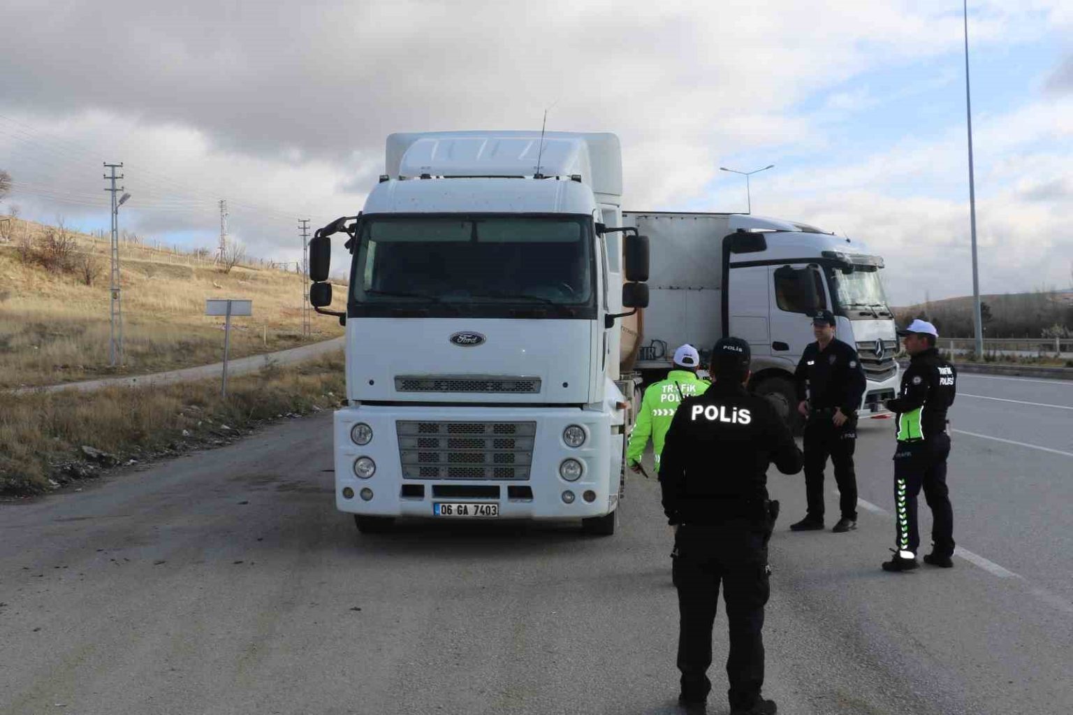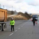 Ankara’nın Akyurt ilçesinde trafik polislerinin zorunlu kış lastiği denetimi uygulaması başladı. Ekipler, kamyonetleri ve tırları çevirerek kış lastiği, ehliyet ve kimlik kontrolü yaptı.
