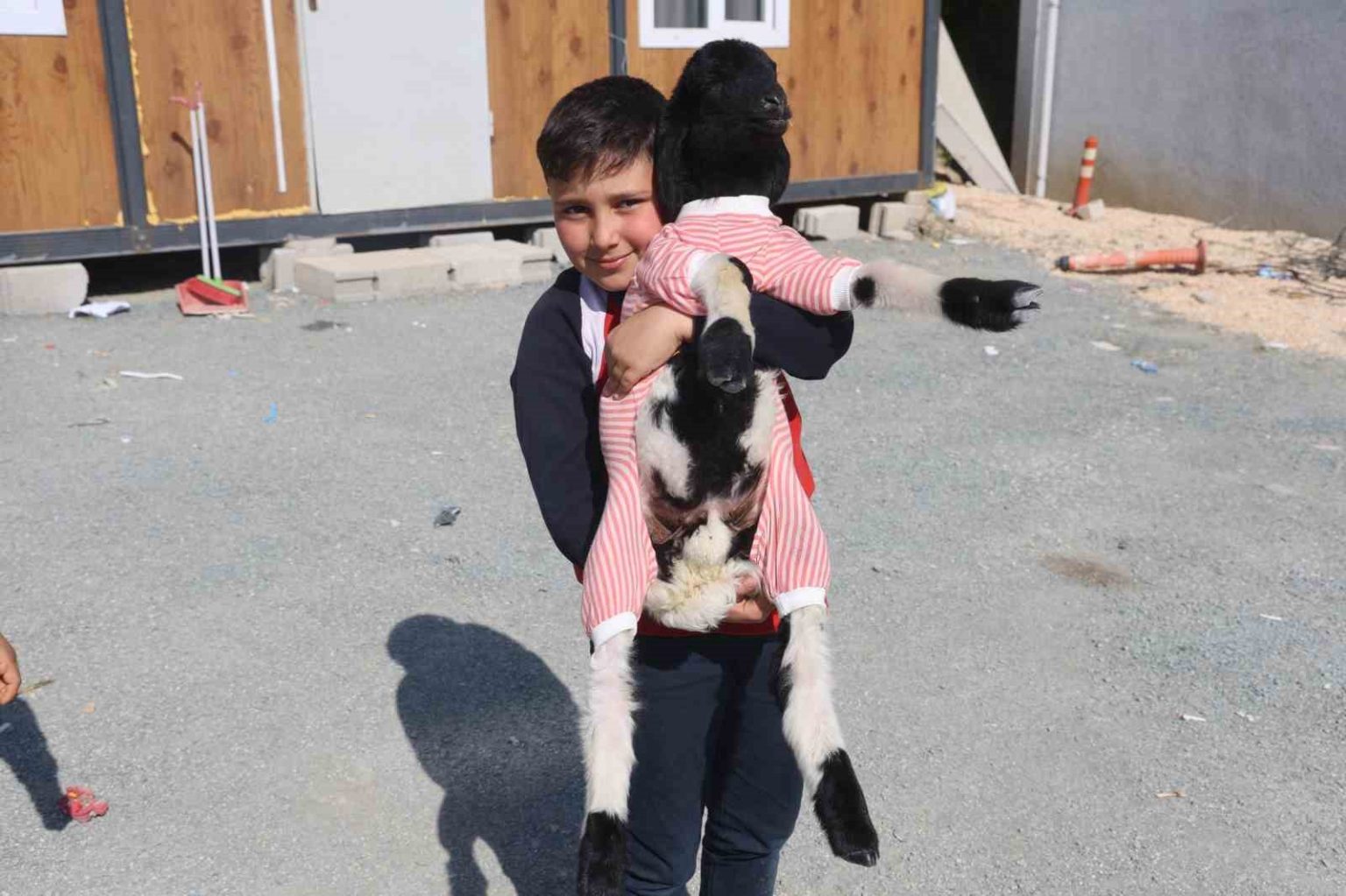 Defne ilçesi Çekmece Mahallesi’nde yaşayan Gökhan Tepe, otopark işleterek geçimini sağlıyor. Yeğeni Ayaz Özgün’e oyun arkadaşı arayan Göztepe, arkadaşının çiftliğinden annesi telef olan bir kuzuyu alarak yeğenine hediye etti. Kuzuyu evinde görünce mutlu olan Özgün, kuzuya ’Boncuk’ ismini vererek onunla zaman geçirmeye başladı. Kuzuyu bir bebek gibi besleyen Özgün, kuzuyu biberonla süt ve su içirerek besliyor. Göztepe’nin otopark işlettiği iş yerinin neşesi olan kuzu, okuldaki çocukların, mahallelinin ve Ayaz’ın da ilgi odağı oldu. Kuzuyla vakit geçirmeyi çok seven Ayaz’ın, kuzusu üşümesin diye giydirdiği elbisesiyse yüzleri gülümsetiyor.