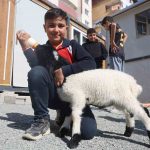 Annesi doğum esnasında telef olan kuzuyu sahiplenerek ’Boncuk’ ismini verdiklerini ifade eden Gökhan Göztepe, hayvanın mahallenin maskotu olduğunu belirterek, “Boncuk kuzuyu, annesi doğururken öldüğü için tanıdığımız bakamayacağı için sahiplendirmek istedi. Biz de Ayaz’a arkadaş olsun diye onu sahiplendik. Kuzuyu aldıktan sonra Ayaz, onunla daha fazla zaman geçirmeye başladı. Sabahtan akşama kadar ona bakıyor. Biberonla süt ve su içiriyor. Biz de burada otopark işlettiğimiz için kuzu da burada oynuyor. Okulun karşısında olduğu için çocuklar gelip kuzuyla oyunlar oynuyorlar ve zaman geçiriyorlar. Ayaz da onunla zaman geçirmekten zevk alıyor. Şimdilik biberonla süt ve su içiriyoruz. Kuzu bebek olduğu için katı yiyecek veya ot yemeye başlamadı. Veterinerlere danışıp yemeğini veriyoruz. Çocuklar kuzuyla zaman geçirmeyi çok seviyorlar. Hava soğuk olduğu için elbisesi de var, elbisesiyle birlikte daha şirin görünüyor” ifadelerini kullandı.