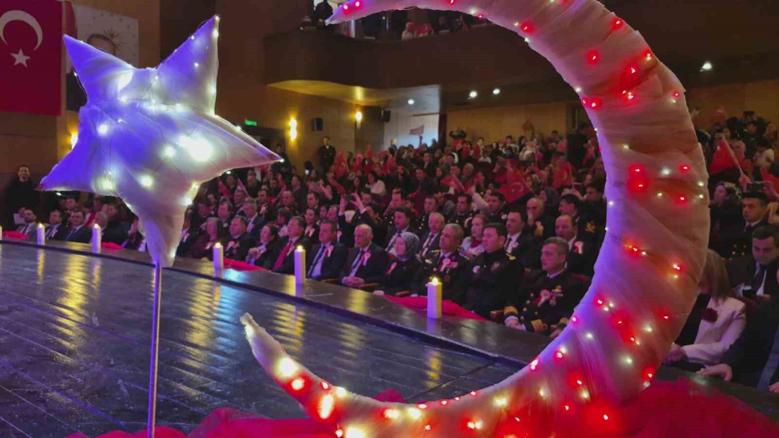 Programda gösterilerini sergileyen bir grup öğrenci ise ’’Yazıyor, yazıyor. Bugün Meclisin açıldığı yazıyor’’ diyerek, TBMM’nin kurulduğu döneme ait gazete kupürünün yer aldığı broşürleri salondakilere dağıttı. Kutlama programına Bartın Valisi Nurtaç Arslan, İl Milli Eğitim Müdürü Ramazan Aşçı’nın yanı sıra, daire müdürleri, polis ve askeri erkan, çocuklar ve aileleri de katıldı.