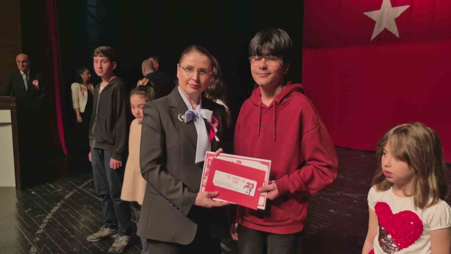 Program 23 Nisan konulu şiir yarışmalarında dereceye giren öğrencilere ödüllerinin verildi. Program esnasında annesinin elinden kurtulan küçük bir kız çocuğu Vali Nurtaç Arslan’ın yanına gelerek, kucağına oturdu.