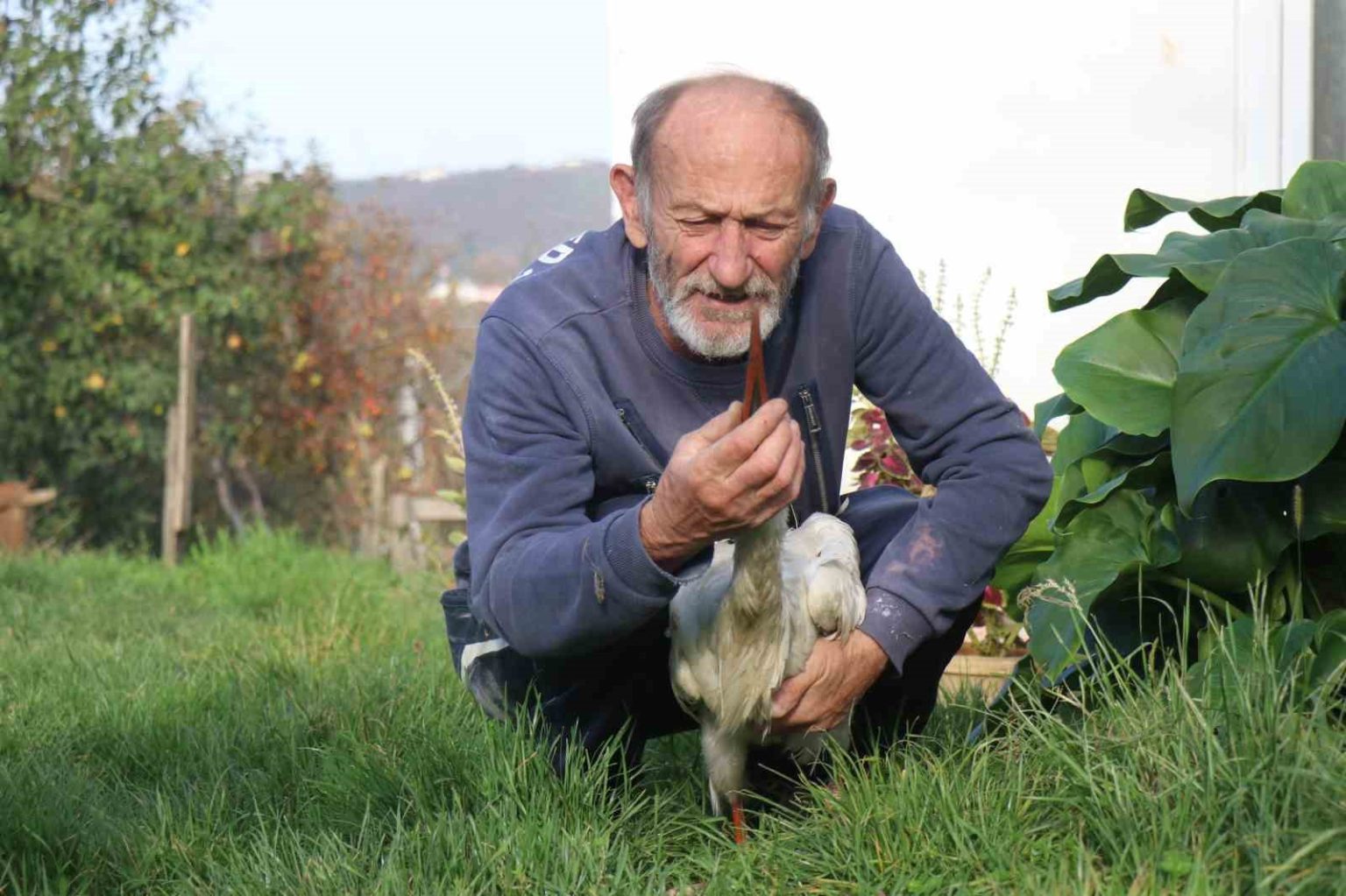 Leyleğin sağlığına kavuştuğunu fakat gitmediğini aktaran Topçu, “Bakım sonrasında leylek ayaklandı ve yürümeye başladı, bir iki metre havalanıp uçmaya başladı. Buranın doğasını mı sevdi, bizi mi sevdi bilemiyorum gitmedi ve burada kaldı. Bunlar göç hayvanları anne ve kardeşleri gidince buda yalnız kaldı. Uçmaya bile hevesi yok yer bizimle beraber yaşamaya devam ediyor. Bakımını üstlendik, gerekli her türlü ihtiyacını karşılıyorum. Bunların sıcak ülkelere gittiği yerlerdeki havayı burada sağlamaya çalışıyorum” diye konuştu.