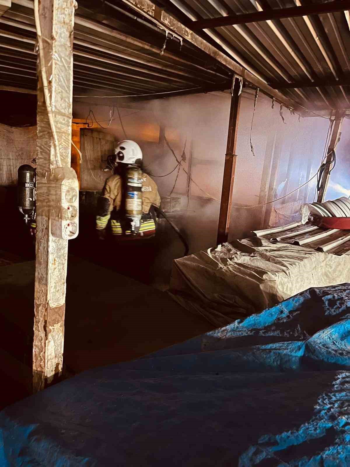 Hatay’da alevlere teslim olarak yanan iş yeri kullanılmaz hale geldi.