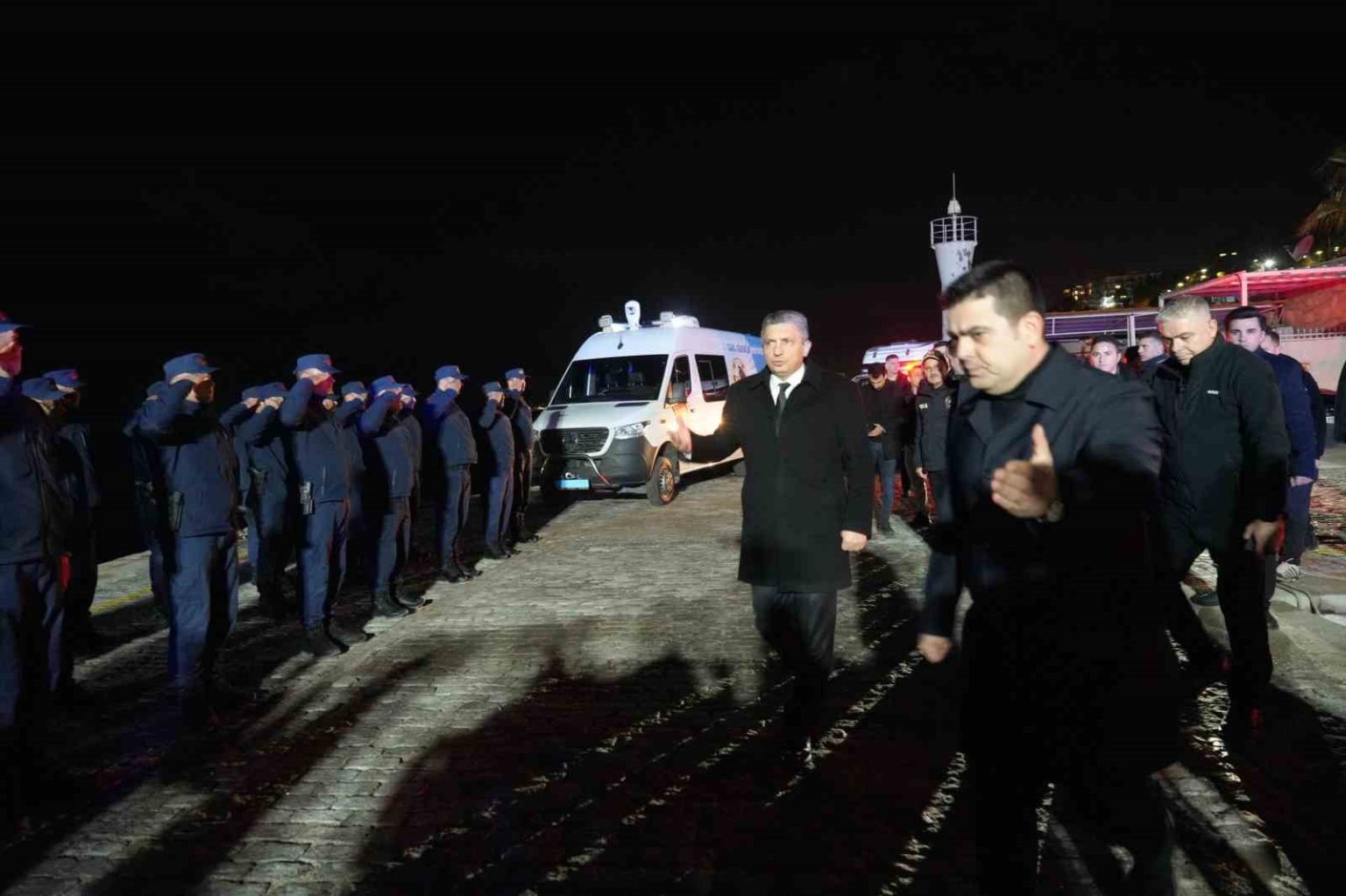 “Limanda sahil güvenlik unsurlarımızı denetleyerek ve yeni yıllarını kutlayarak kontrollerimize başlıyoruz. Buradan Kaleiçi’nde görev alan arkadaşlarımızı ziyaret edeceğiz. Ardından Yeşildere, Zeytinköy bölgesinde görev yapan ekiplerimizi ziyaret edeceğiz. Daha sonra Kepez İl Emniyet Müdürlüğü ve ilçe emniyet müdürlüklerimizi ziyaret edeceğiz. Son olarak da jandarma komutanlığımızın unsurlarını ziyaret etmeye devam edeceğiz. Hem denetleme hem de yeni yıllarını kutlama şeklinde sabaha kadar görevdeyiz.”