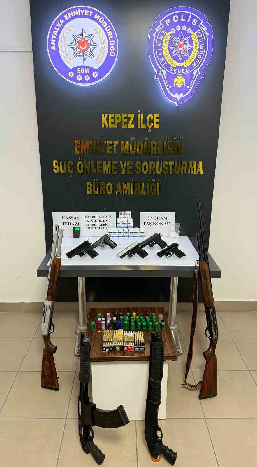 Antalya’da polis ekipleri tarafından Kepez ilçesinde 20 ayrı adrese 40 ekip 150 personelin katılımıyla eş zamanlı operasyon gerçekleştirildi. Operasyon kapsamında ruhsatsız silah ve uyuşturucu madde ele geçirilirken, 10 şüpheli hakkında adli ve idari işlem yapıldı.