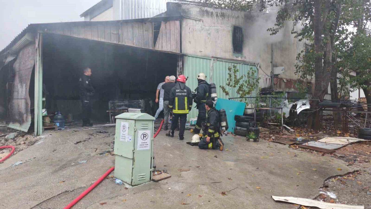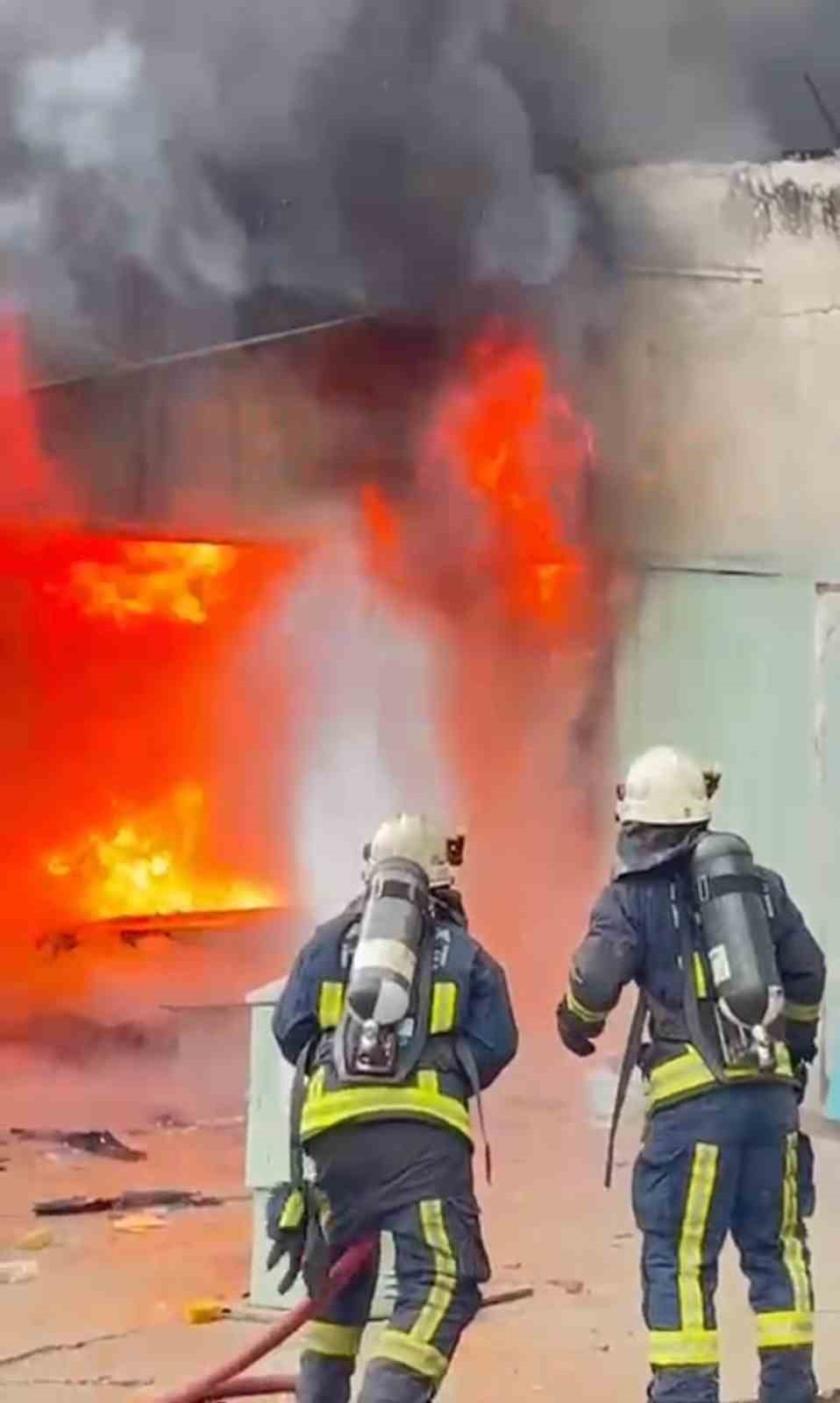 Antalya’da oto boyama atölyesindeki yangında iki iş yeri zarar gördü