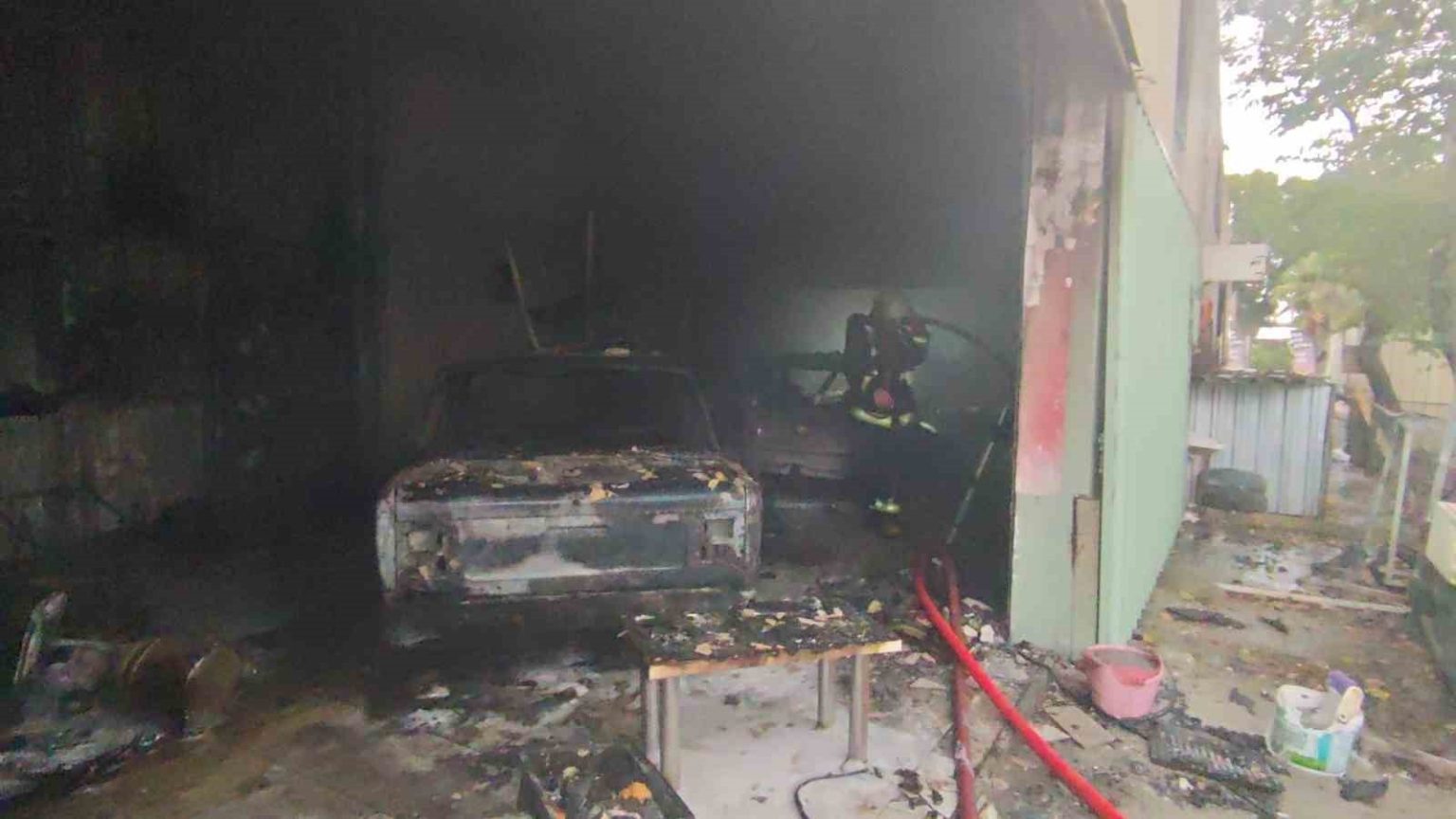 Antalya’nın Kepez ilçesinde oto boyama atölyesinde çıkan yangın, bitişikteki iş yerine de sıçradı. Yangında iki iş yeri de zarar görürken, atölyede bulunan 2 araç kullanılamaz hale geldi.