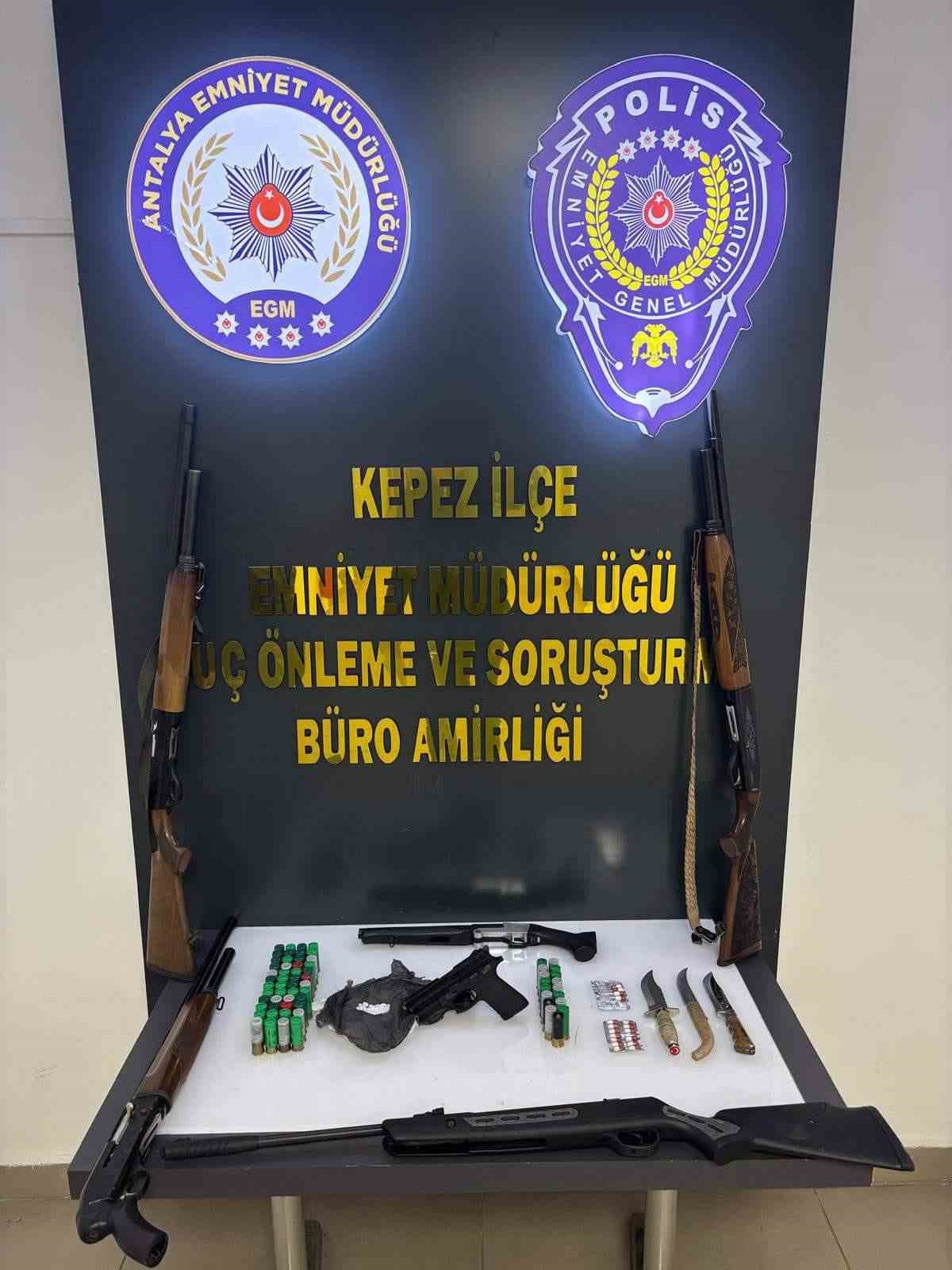 Antalya’nın Kepez ilçesinde çeşitli silah ve uyuşturucu maddeler ele geçirildi, 5 şüpheli hakkında adli ve idari işlem yapıldı.