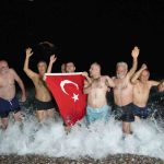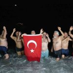 Grup üyelerinden İsmail Çankaya, her gün sabah erken saatlerde denize girdiklerini belirterek, “Her gün sabahsaat 07.00’de denize giriyoruz. Herkesin yeni yılı kutlu ve mutlu olsun. Yeni yılı denizde karşıladık, denizin suyu sıcaktı” dedi.