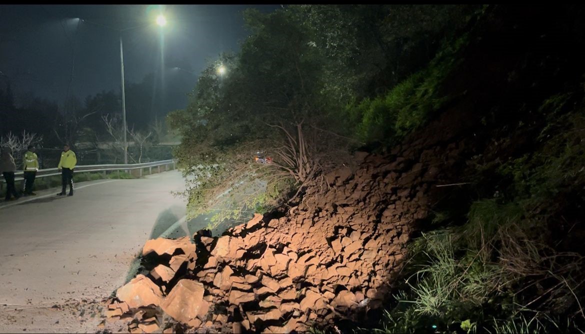 Bursa’nın Nilüfer ilçesinde meydana gelen toprak kayması nedeniyle, kayalıklar yola savruldu. Bir sürücü kazadan kıl payı kaçarken o anlar kameraya yansıdı.