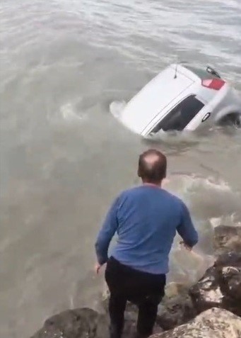 Aracıyla denize düşen sürücüyü Sahil Güvenlik kurtardı