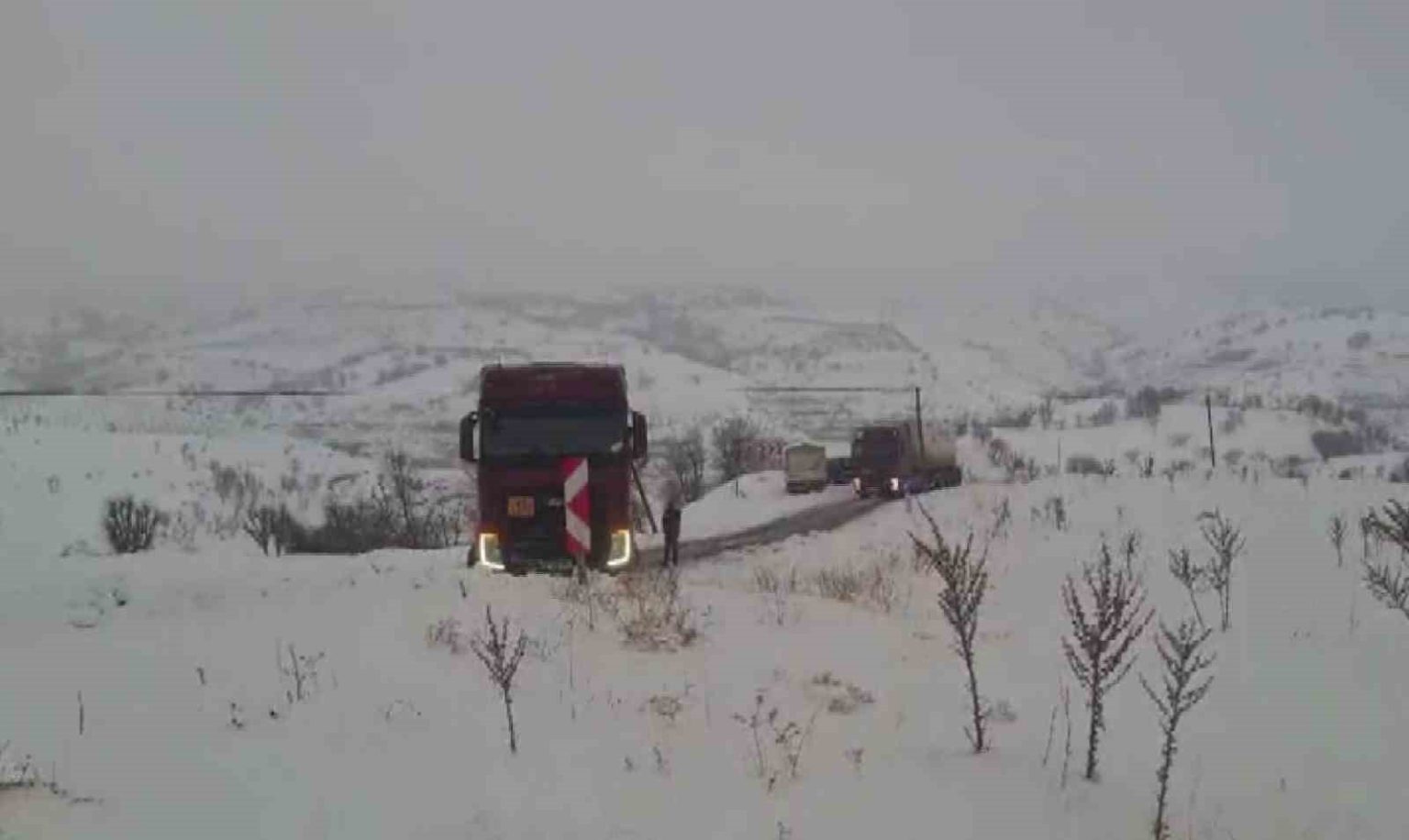 Adıyaman’ın Sincik-Kahta karayolu Karakuş mevkiinde yoğun kar yağışından dolayı bir çok araç yolda mahsur kaldı. Mahsur kalan araç sürücüleri bulundukları yerden kurtulabilmek için yoğun çaba sarf etti.