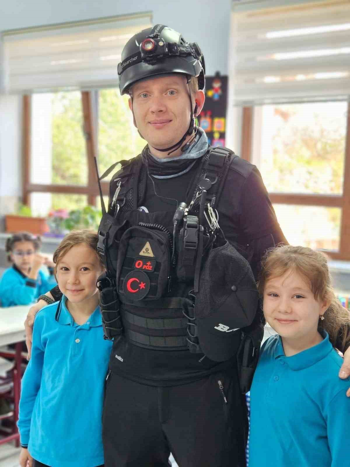 Bursa’da ilkokullarda deprem farkındalık eğitimi ve tatbikatı gerçekleştirildi. Arama kurtarma köpeği Tipo çocukların gözdesi oldu.